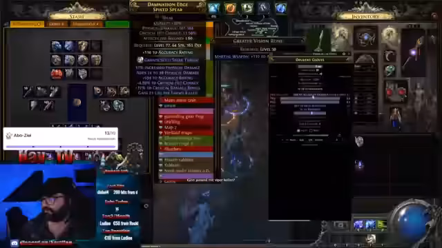 06:31:33Im Mittelpunkt des Streams steht der kontinuierliche Grind nach hoher Rarity, um die Loot-Chancen zu maximieren. Es werden verschiedene Builds wie Ranger und Lightning Spear diskutiert und getestet. Besonderes Augenmerk liegt auf dem Rollen von Items mit hoher Schadenswahrscheinlichkeit, wobei ein selbst gecrafteter Ring mit 3040x als eines der Highlights vorgestellt wird. Auch andere wichtige Gegenstände wie Breach-Ringe und Tänkler-Ringe werden im Detail besprochen und ihre Performance analysiert.
