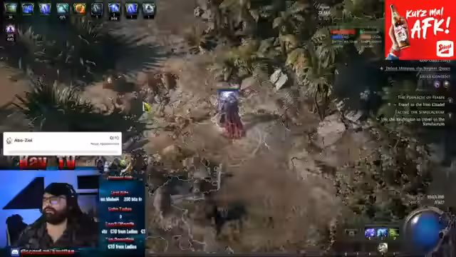04:55:51Die Streamerin aktiviert den Handel, um Schuhe für 40 Exalted zu verkaufen, und muss sich dafür erneut einladen lassen. Sie sucht aktiv nach Rarity-Tablets, um die Loot-Chancen in der Gruppe zu verbessern, und bittet den Chat darum, welche zu spenden. Der TFT-Server wird weiterhin beworben und es wird erklärt, dass T16 XP-Maps am wertvollsten sind. Auch die Problematik, warum weniger Items verkauft werden, wird diskutiert.