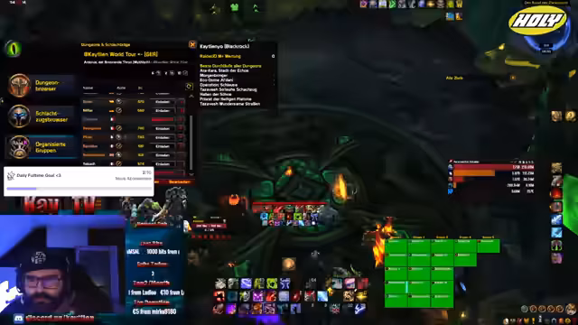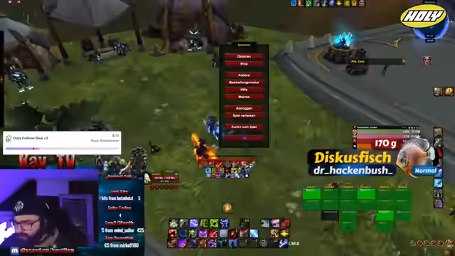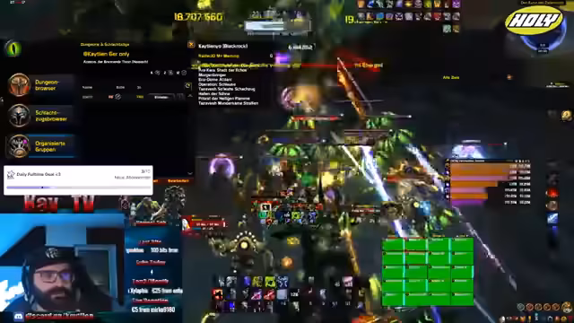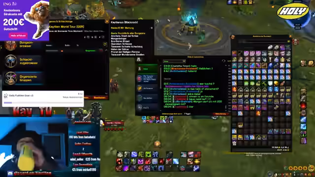 00:17:32Der Streamer stellt fest, dass der Anmeldeprozess für den Raid schleppend verläuft, insbesondere für den Mythic-Schwierigkeitsgrad. Es wird erklärt, dass zu viele Spieler mit geringer Ausrüstung zu Problemen führen, vor allem beim fünften Boss. Die Community wird dazu ermutigt, weitere Mitspieler zu finden und sich im Chat zu melden. Es wird auf ein Addon namens "Groupfinder Flex" hingewiesen, das anzeigt, aus welchem Land die Spieler kommen. Der Streamer versucht, eine Taktik anzuwenden, um schnell eine volle Raidgruppe zu bekommen, indem er Spieler zunächst in eine separate Gruppe einlädt und erst später in die Hauptgruppe verschiebt. Es wird auch ein Giveaway für eine Epic Edition des nächsten WoW-Addons angekündigt, bei dem man durch das Angeln eines bestimmten Fisches teilnehmen kann.