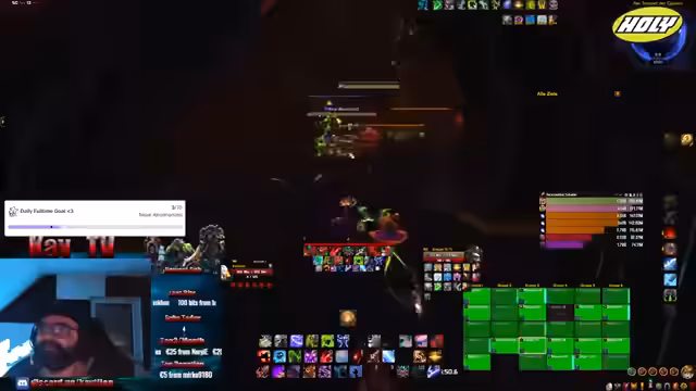 00:03:28Der Streamer kündigt den Start des Raids an und bedankt sich bei den Supportern Steffen und Lutzio. Es wird der Vault in Warcraft gestartet, wobei die Teilnehmer gebeten werden, sich anzumelden. Für den ersten Raid auf dem Schwierigkeitsgrad "Mythic" ist eine gute Ausrüstung (Gear) erforderlich, während für spätere Raids auch weniger gut ausgerüstete Spieler mitgenommen werden können. Es wird betont, dass besonders der erste Raid, Antorus Mythic, ohne entsprechendes Gear schwierig ist. Spieler werden aufgefordert, ihren Charakternamen im Chat zu nennen, um eingeladen zu werden. Die Gruppe plant, alle Raids der Reihe nach zu absolvieren, was als "Walltour" bezeichnet wird. Es wird erwähnt, dass bereits einige Spieler mit weniger guter Ausrüstung dabei sind, aber für die schwierigeren Bosse noch stärkere Spieler benötigt werden.