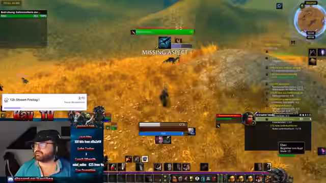 03:47:31Nachdem er einen Flugpunkt geholt hat, portet der Streamer in die Stadt Stormwind. Er äußert seine Vorliebe für die Allianz, erkennt aber an, dass er sich in ihrer Gebieten wie der Brennenden Steppe und dem Düsterwald weniger auskennt als auf der Horde-Seite. Später gerät er in einer Gruppe von Elites in Gefahr und muss fliehen. Er beschreibt einen kritischen Moment, in dem er sein Haustier wiederaufrufen will, aber nicht genug Mana dafür hat und sich nur knapp retten kann.