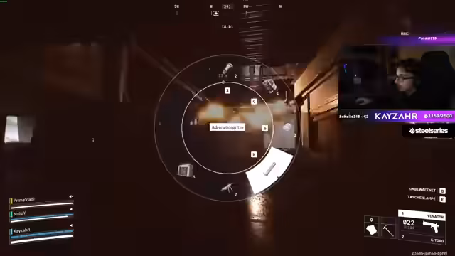 00:37:59Nachdem mehrere Spieler getötet wurden, planen die verbleibenden Teammitglieder die Extraktion. Der Streamer und sein Buddy entscheiden sich, zum normalen Extraktionspunkt zu gehen. Sie beobachten, dass andere Teams ebenfalls dorthin unterwegs sind. Der Streamer versucht, einen feindlichen Spieler zu ködern, während er sich bewusst ist, dass jederzeit ein Hinterhalt erfolgen könnte.