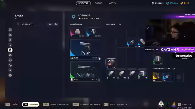 04:17:03Nach einem erfolgreichen Kampf ist das Inventar des Streamers vollständig gefüllt. Er besitzt eine große Menge an Beute, darunter seltene Waffen wie mehrere Venator 4 und eine Tempest 4. Dies führt zu einem Problem, da er keine Gegenstände mehr aufnehmen kann. Der Streamer überlegt, welche Gegenstände er verkaufen oder weglassen soll, um Platz zu schaffen, und ist darüber frustriert, dass er die wertvolle Beute nicht mitnehmen kann.