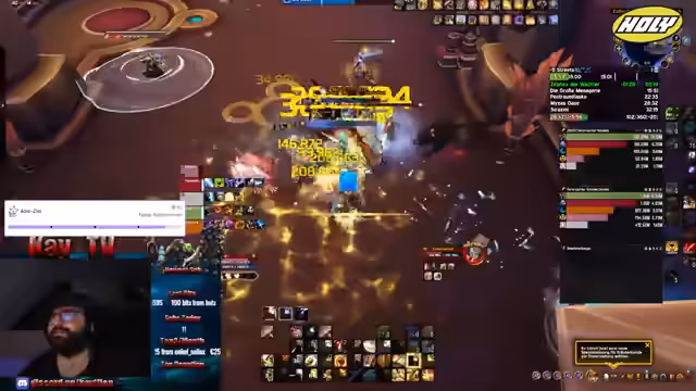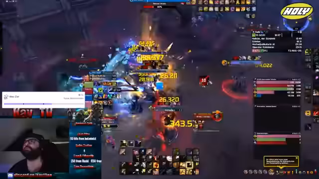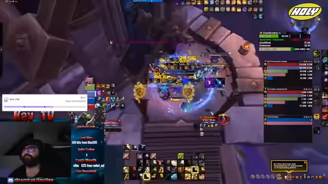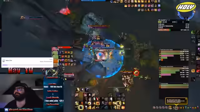02:58:07Der Streamer führt einen Mythic+ Dungeon durch und gibt währenddessen klare Anweisungen an seine Gruppe. Er erklärt die Mechanik der Bosse, wie zum Beispiel das Totstellen bei bestimmten Affixen, und zeigt sein tiefes Verständnis für die Spielmechaniken. Das Ziel der Gruppe ist es, zusätzliche Plus-Level zu erreichen (plus 2), was trotz weniger idealer Ausstattung der Mitspieler gelingt.