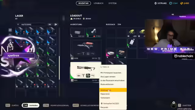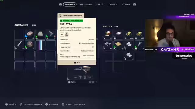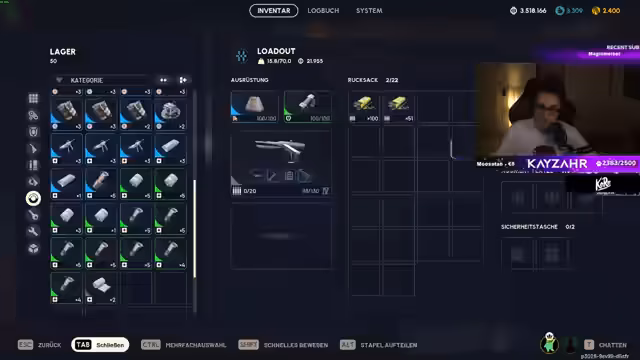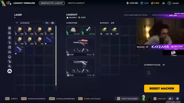 05:10:18Nach anfänglicher Frustration über das Inventarmanagement entdeckt der Streamer eine schnellere Methode, Waffen-Mods anzubringen, indem er die Waffe ins Inventar zieht und dann mit Shift und Mausklick die Mods hinzufügt. Dieser Tipp aus dem Chat wird dankbar angenommen und beschleunigt den Prozess erheblich. Das Lager sieht nun deutlich besser aus, obwohl immer noch nur 20 Plätze frei sind. Es wird überlegt, welchen Spielmodus man als Nächstes spielen soll, wobei der Streamer sich entscheidet, auf einem NA-Server zu spielen, um 'Americans abzufacken' mit der 'Kettel'. Die Gunfights auf EU-Servern werden als 'cleaner' empfunden, was auf mögliche Server-Tick-Rate-Probleme hindeutet. Die Anzahl der Spieler in einer Lobby wird auf etwa 25 bis 30 geschätzt, wobei immer wieder neue Spieler nachkommen. Der Streamer beschließt, eine 'richtige Fantasierunde' zu starten, mit einem teuren Loadout von 90K, um gegen die Matriarchin zu kämpfen, wohlwissend, dass er wahrscheinlich weniger Loot herausbekommen wird.