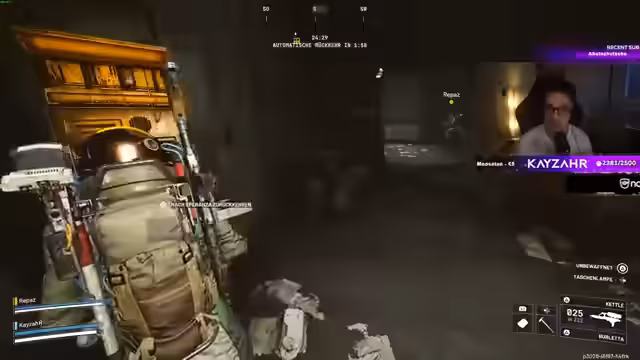 00:41:50Der Streamer und sein Teammate unterschätzen die Springer und bemerken, dass sie direkt vor ihnen spawnen, sogar am Exfil-Punkt. Sie beobachten, wie vier Leute beim Exfil kämpfen und einer von ihnen vom Springer ausgeschaltet wird. Sie entscheiden sich, den Springer mit Flammen-Granaten zu bekämpfen und werfen zwei Stück auf ihn, was ihm nicht gefällt. Der Springer bleibt im Flammenbereich stehen und explodiert schließlich. Sie suchen nach den anderen Gegnern und finden einen, der ein Bein verloren hat. Sie müssen ihn pushen, obwohl sie wenig Munition haben. Es kommt zu einem weiteren Gefecht, bei dem der Streamer eine Mine übersieht und von Gegnern von hinten angegriffen wird. Trotz guter Schüsse wird er von einem Mate des Gegners ausgeschaltet. Er ist frustriert über die Third-Party-Action und die vielen Granaten, die geworfen wurden. Er identifiziert die Waffen der Gegner als Venator 4 und Bobcat 1 und plant, seine Bobcat 2 anstelle der Stitcher zu spielen.
