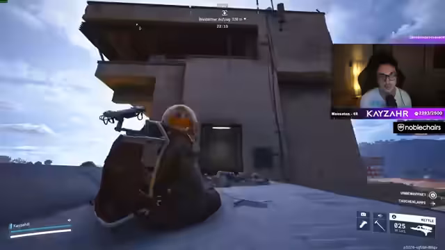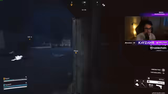 00:06:36Nach einem intensiven Feuergefecht stellt der Streamer fest, dass ihm die Munition für seine Kettel-Waffe ausgeht und er nur noch elf Schuss hat, während er auf eine Venator 2 ausweichen muss, die langsamer schießt. Sie planen, sich über ein anderes Gebäude hochzuschleichen, um den Rocketeer-Gegnern auszuweichen, die aggressiv auf sie schießen könnten. Die Situation spitzt sich zu, als sie weitere Gegner entdecken, die bereits aggressiv sind. Sie müssen entscheiden, ob sie sich verstecken, die Gegner abschießen oder direkt angreifen. Der Streamer wird von einem Gegner anvisiert, was ihm jedoch nicht sofort angezeigt wird. Es kommt zu weiteren Schusswechseln, und die Langsamkeit der Venator 2 wird zum Problem. Trotzdem gelingt es, einen Gegner zu treffen und einen Erfolg zu erzielen. Die Suche nach dem Mate des getroffenen Gegners beginnt, während der Streamer nur noch 28 Schuss für seine Kettel hat und eine zweite Waffe benötigt.