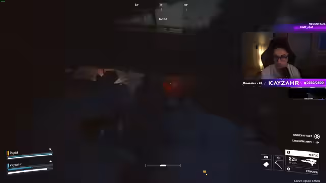 01:09:31Der Streamer und sein Teammate verfolgen einen Gegner, der weggelaufen ist und eine Toro-Waffe dabei hatte. Sie vermuten, dass der Gegner vor jemandem geflohen ist, da er angeschlagen war. Sie hören die Gegner links von sich und sehen, wie sie eine Tür öffnen. Der Streamer nimmt die Toro-Waffe des Gegners und sucht nach weiteren Granaten. Die Gegner öffnen eine weitere Tür, und es kommt zu einem Feuergefecht mit Shotguns. Der Streamer wird von einer Flammengranate getroffen und erleidet Schaden. Er ist frustriert über die Treffergenauigkeit der Granaten und die Widerstandsfähigkeit der Gegner. Sie finden eine weitere Leiche und bemerken, dass die Gegner etwas öffnen. Der Streamer nimmt eine Stitcher 4 mit 20er Mech auf. Sie hören, wie ein Gegner sein Schild auflädt, und lokalisieren zwei Gegner mit Shotguns, einen hinter einem Schrank und einen im Gang. Der Streamer und sein Teammate besiegen die Gegner, wobei Chris einen entscheidenden Beitrag leistet. Sie stellen fest, dass die Waffen der Gegner kaputt sind und diskutieren über die Effizienz des Zerlegens von Gegenständen im Lager im Vergleich zum Inventar.