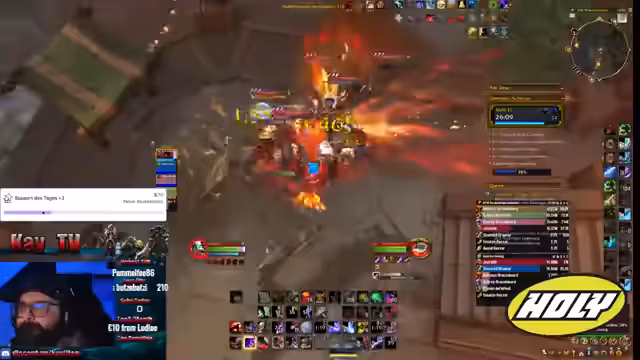 00:24:30Während des Streams treten wiederholt technische Probleme auf. Der Streamer beklagt sich über störende Sound-Bugs, insbesondere einen 'Fidelity'-Sound, und UI-Fehlermeldungen. Die Funktionsfähigkeit von Addons wie Details! und DBM wird hinterfragt. Die Notwendigkeit der Überarbeitung von Interface-Elementen wie Nameplates wird erwähnt. Zudem wird die Frage diskutiert, ob es Sound-Addons für Dodge-Benachrichtigungen gibt, um die Konzentration zu verbessern.