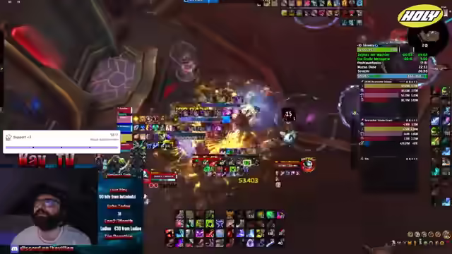 03:06:06Die Zuschauer wurden aufgefordert, an einem Ingame-Event teilzunehmen, bei dem ein Boss besiegt werden muss, um ein Cutting Edge zu erhalten. Es wurde über das Item-Glück bei Man-the-Cash-Keys diskutiert und das fehlende Trinket beklagt. Der Streamer erzählte von einem Erlebnis, bei dem ihm ein DD mit niedrigem Rio ein begehrtes Trinket weggewürfelt hat, was zu Frustration führte. Überlegungen zu einem neuen Transmog wurden angestellt. Es wurde nach den besten Edelsteinen gesucht und über die Gründe für das Scheitern eines 16er-Keys diskutiert. Der Streamer erwähnte, dass er morgen wieder Keys machen wird.