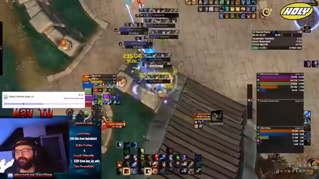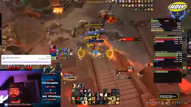 00:53:38Der Streamer führt einen Dungeonlauf mit einer gemischten Gruppe durch, die sich aus Community-Zuschauern zusammensetzt. Es wird ein M+12 Key gespielt und der Fokus liegt auf dem koordinierten Zusammenspiel der Teammitglieder. Während des Runs gibt es technische Herausforderungen, wie Sabotage durch einen Teamkollegen, die jedoch humorvoll aufgegriffen werden. Der Streamer zeigt sich flexibel bei der Rollenverteilung und passt sich an die Bedürfnisse der Gruppe an, um den Run erfolgreich abzuschließen.