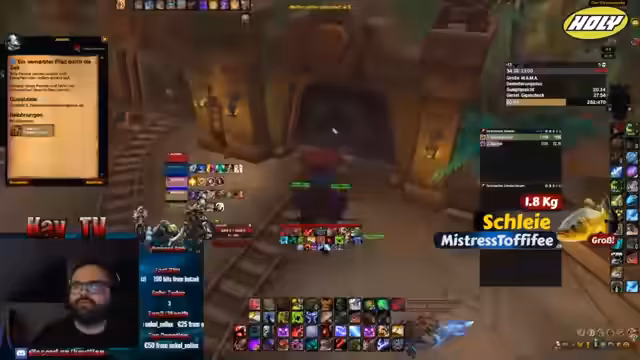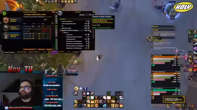 01:08:14Gemeinsam mit der Community wird ein Mythic+-Dungeon absolviert. Während des Runs gibt es Herausforderungen, wie den Tod eines Gruppenmitglieds, aber auch strategische Erfolge wie das Überleben eines riskanten Pulls. Zusätzlich zu den Spielaktivitäten wird ein angestrebtes 25€ Shop-Giveaway angesprochen, das im Zusammenhang mit einem Angeln-Event stattfinden soll. Der Gewinner soll derjenige sein, der den "dicksten Fisch" am Anfang des Events fängt. Der Fokus bleibt jedoch auf dem erfolgreichen Abschluss des Keys und der gemeinschaftlichen Unterstützung.