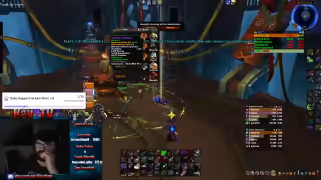 02:56:08Während des Spiels treten erhebliche technische Probleme und Missverständnisse auf. Es wird eine falsche Talentverteilung (Raidtalente anstatt Talente für Dungeons) festgestellt, was zu geringer Überlebensfähigkeit führt. Die Streamerin diskutiert zudem das Problem mit einem Interface-Add-On, das Positionierungselemente sabotiert. Diese Fehler führen zu mehreren gescheiterten Versuchen und verlangen nach Neustarts, was den Spielverlauf und das Erlebnis erheblich beeinflusst.