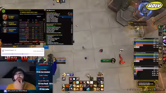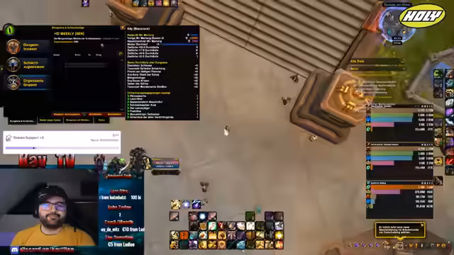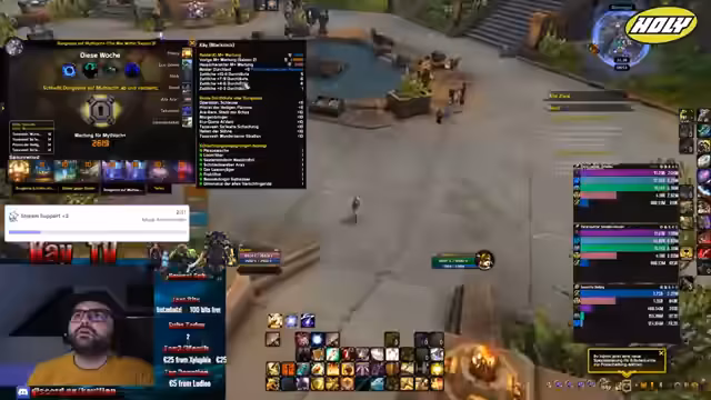 00:04:11Der Stream um 7 Uhr früh beginnt mit Gegrüßen und einem Energie-Getränk. Der Streamer macht sich auf den Weg zum Murloc-Heiligtum, um wöchentliche Schlüssel zu laufen. Er stellt fest, dass es zu dieser ungewöhnlich frühen Stunde nur wenige Spieler gibt, was das Finden einer Gruppe erschwert. Trotz der schwierigen Bedingungen entschließt er sich, einen Schlüssel zu starten und bittet die Chat-User im Discord-Channel um Unterstützung, um eine 10er-Gruppe zusammenzustellen.