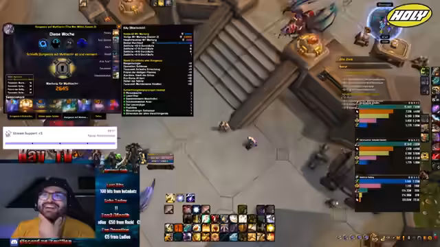 00:42:06Der Streamer beginnt mit seiner Paladin-Tank-Klasse durch den Schlüssel und muss auf mehrere Mechaniken achten, darunter Pfeilplattformen, Verfluchung und Big Damage. Er nutzt seine Fähigkeiten wie Heilige Kraft und rückt vor, um den Schaden zu verteilen und die Adds zu kontrollieren. Der Streamer betont die Bedeutung von guter Positionierung und Interrupts, um die Mobs zu bezwingen und einen schnellen Schlüssel zu absolvieren.