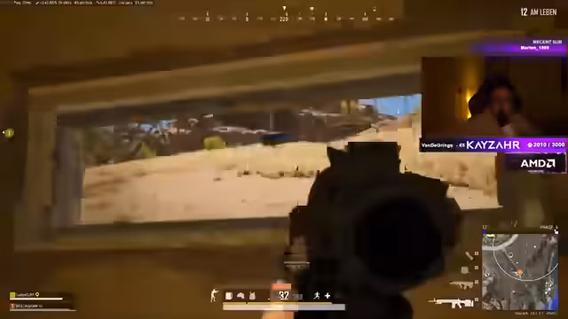 04:00:34Der Streamer und sein Team bewegen sich strategisch durch die gefahrliche Zone und nutzen Taktiken wie das 'Zonarücken' (D-Juggen). Es kommt zu intensiven Feuergefechten, bei denen Waffen wie die M4 und MK12 eingesetzt werden. Das Team kommuniziert laute Positionsangaben und plant Angriffe, während es gleichzeitig seine Ressourcen wie Smokes und Flashes für den finalen Kampf managt.