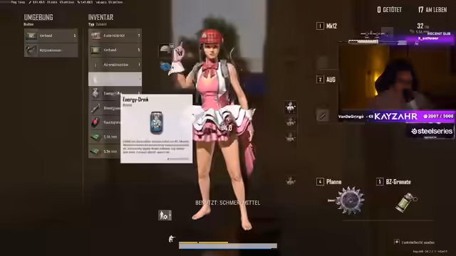 02:17:55Der Streamer unterhält sich über Fußball, insbesondere über das Spiel von Bielefeld in der dritten Liga, und vertritt die Meinung, dass Drittligamannschaften für Erstligisten unangenehmer sein können. Hauptaugenmerk liegt jedoch auf dem PUBG-Spiel, wo er über seine FPS-Leistung mit einer neuen AMD-CPU spricht und verschiedene Spielsituationen im Detail kommentiert, darunter Bewegungen, Gegnerpositionen und Loot-Funde.