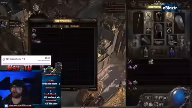 03:01:27Es wird über Gerüchte gesprochen, dass der Streamer von Aaron Fame abgreifen wolle. Es wird ein neuer Bereich betreten und festgestellt, dass dieser Level 3 ist. Es wird ein Anzeige-Bug vermutet, da bei einem Zuschauer eine falsche Zeit angezeigt wird. Es wird überlegt, ob War Mage am Anfang spielbar ist. Der Lootfilter soll angepasst werden, da zu viele Items angezeigt werden. Es wird überlegt, welche Items am Anfang wichtig sind und welche man ignorieren kann. Es wird erwähnt, dass 400 Gold für eine Gamble-Waffe gespart werden soll. Alex power-levelt. Es wird der Boss besiegt und über den geringen Goldertrag am Anfang geklagt. Es wird ein Helm gefunden und die Zuschauer werden zur Teilnahme am Giveaway aufgefordert. Es wird ein Resub von André bedankt. Es wird Twister hochgeskillt, um mehr Schaden zu verursachen. Es werden Zuschauer begrüßt und sich für deren Unterstützung bedankt.