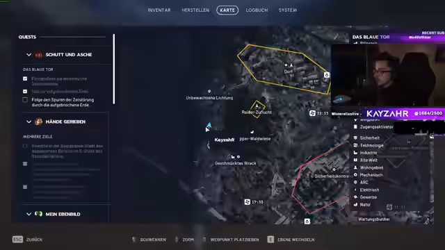 06:16:47Der Streamer arbeitet an einer Quest, bei der er Raider-Kiez-Komponenten sammeln muss. Er erwähnt, dass er für die zweite Stufe der Quest nach Stella Montes reisen muss, aber noch nicht genügend Materialien abgegeben hat. Während er lootet, kommentiert er die mäßige Ausbeute in einem Krankenhausbereich und bereitet sich auf eine neue Runde vor.
