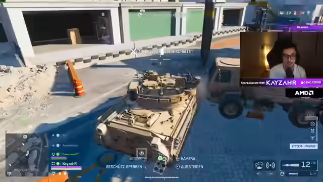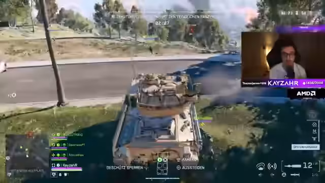 01:51:42Das Duo versucht, einen Panzer zu klauen oder zu zerstören. Der Streamer wirft eine Bombe auf den Panzer, verfehlt ihn aber. Es kommt zu einem taktischen Chaos, in dem der Panzer sie angreift und der Streamer letztendlich stirbt, weil er sich nicht rechtzeitig aufstellen konnte. Die Situation wird als 'Arsch-Panzer' beschrieben und sie entscheiden sich, darauf zu verzichten, stattdessen wegzurennen und die Mission abzubrechen.