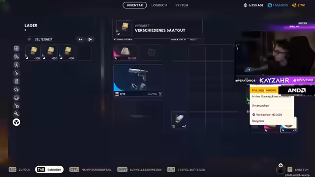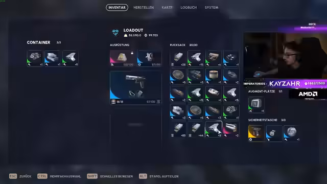 05:14:30Am Ende des Streams fasst der Streamer seine aktuellen Ziele zusammen. Er möchte noch drei Springer-Impulse-Einheiten farmen, bevor er den Stream beendet. Er plant, eine große Menge an Munition für zukünftige Raids mitzunehmen, und gibt einen Einblick in sein Lagermanagement, das recycelte Material und neue Baupläne umfasst. Er bereitet sich auf den Aufbruch zu der CDL-Veranstaltung am nächsten Tag vor.