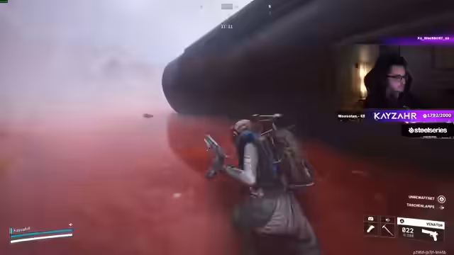 05:24:18Der Streamer gerät in PvP-Situationen, in denen er mit amerikanischen Spielern interagiert, meist zuerst freundlich, was aber oft in Feindseligkeit umschlägt. Ein Spieler wird abgeschossen, und der Streamer äußert Mitleid, als er den Kampf eines anderen beobachtet. Er vergleiche das Gameplay mit einem Berliner Club und findet den amerikanischen Server unterhaltsamer. Das Problem des hohen Pings wird thematisiert, was das Gameplay erschwert. Im Hintergrund läuft ein Zählen der Abonnenten, die plötzlich auf 1900 ansteigen.