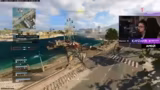 01:30:07Nach einer erfolglosen Landung gelangt der Streamer an einen Ort mit mehr Aktivität. Er findet endlich Gegner und erwirbt zwei goldene Waffen, was ihm ein gewisses Gefühl der Überlegenheit gibt. Allerdings wird er prompt von einem gegnerischen Geschütz attackiert, was ihn sehr ärgert und ihm sogar einen Herzinfarkt vortäuscht. Der erste Kampf verläuft chaotisch, und er hat das Gefühl, ständig ins Visier genommen zu werden, ohne ausreichend ausgerüstet zu sein.