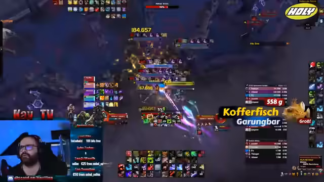 02:23:22Nach einer Unterbrechung wegen technischer Probleme widmet sich der Streamer wieder dem Gameplay von World of Warcraft. Es werden Dungeon-Gruppen zusammengestellt, um den wöchentlichen Vault zu füllen. Während des Laufs der Dungeons wie Arakara und Schließstein des Verderbens wird über Routen, Game-Updates wie das entfernte Skip-Mechanik und das allgemeine Spielerlebnis in M0 (Mythic Null) gesprochen. Der Fokus liegt auf Effizienz und Spaß im Gruppienspiel.
