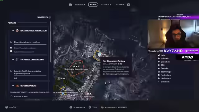 00:08:46Der Streamer erkundigt sich nach Quests und Felddepots, die er für eine Mission looten muss. Er entdeckt ein Felddepot am Bahnhof, links unten vom Krankenhaus, und ist überrascht, dass es ihm angezeigt wird. Während seiner Erkundung trifft er auf andere Spieler, die sich als freundlich erweisen und ihm sogar Tipps geben. Diese positiven Interaktionen mit der Community überraschen ihn, da er in anderen Spielen oft feindselige Begegnungen erlebt hat. Er muss eine Antenne reparieren, was ihm anfangs Schwierigkeiten bereitet, und stellt fest, wie laut diese Aktion ist. Er fragt sich, ob die Roboter von Geräuschen angezogen werden.