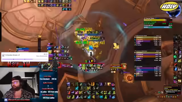 02:24:54Der Streamer gibt seine Versuche auf, einen weiteren Schlüssel zu spielen, da keine anderen Mitspieller in der Community verfügbar sind. Er kritisiert die geringe Aktivität zu dieser frühen Morgenzeit und stellt fest, dass die meisten entweder noch schlafen oder arbeiten. Trotzdem hofft er noch auf ein paar Mitspieler für einige kurze Mythisch Plus-Schlüssel. Er erwähnt zudem sein aktuelles Ziel, mit seinem Death Knight noch 30 Punkte für den Server-Rang zu machen, um Platz 1 zu erreichen, was jedoch aufgrund der fehlenden Mitspieler schwierig ist.