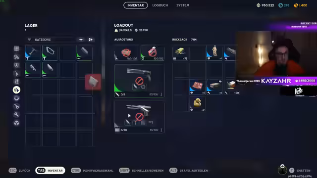 06:51:33Der Streamer räumt sein Inventar auf und entscheidet, welche Waffen er craften möchte, darunter die Renegade, Anvil und Venator. Er verkauft oder recycelt unnötige Gegenstände wie mittlere Schilde, da er reich an Ingame-Währung ist und sich keine Sorgen um Verluste machen muss. Er ist noch in der zweiten Stufe eines Projekts und benötigt Komponenten und Kühlungslüfter. Er kann elektrische Komponenten craften und überlegt, was er verkaufen oder recyceln soll, um Platz zu schaffen. Er kauft Stoff, um weitere Gegenstände herzustellen, und bezeichnet sich selbst als „Loot-Maus“ und „Loot-Messi“. Er plant, mit einem richtigen Loadout in die nächste Runde zu gehen und überlegt, welche Waffe am besten für PvP geeignet ist, wobei er die Renegade und Venator 4 als sehr stark einschätzt. Er erwähnt, dass bei einem Prestige-Reset alle Werkbänke zurückgesetzt werden.