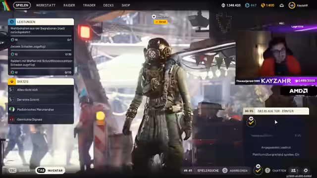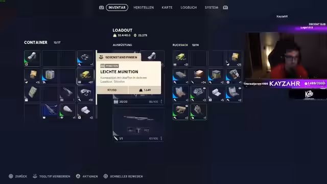 04:43:50Kayzahrs Stream beginnt mit intensivem PvPvE-G Gameplay in Arc Raiders. Er kämpft gegen andere Spieler und lootet Gegenstände. Er wird Millionär und stellt fest, dass der Stau in der Runde nur 10 Minuten dauert. Sein Fokus liegt auf der Suche nach spezifischen Items wie Aprikosen und ein ultra gemütliches Kissen. Er berichtet über einen anderen Spieler, der die Königin mit einer verbuggten Granate gekillt hat und plant, solche abzucampen.