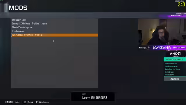 00:13:36Nach der VR-Einrichtung wird sich auf Black Ops 3 Zombies konzentriert. Das Moon-Easter-Egg wird als Ziel erklärt. Der Streamer ist dabei nicht geübt und bittet den Chat um Hilfe bei den Schritten. Ein schwieriger Teil ist das Simon-Spiel, bei dem sich eine Farbfolge merken muss. Der Streamer kämpft mit der Konzentration und findet die Abfolge sehr anspruchsvoll.