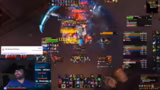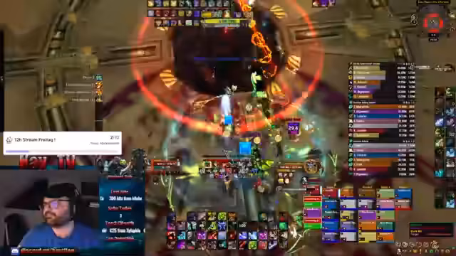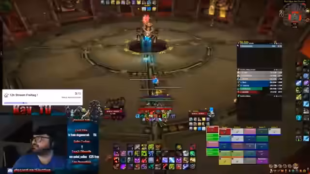 03:00:37Der Fokus liegt auf dem Gameplay, insbesondere auf der Bewältigung der spezifischen Mechaniken der Raid-Bosse. Der Streamer leitet die Gruppe an, die Positionen wechseln, Schaden auffangen (soaken) und bestimmte Fähigkeiten wie den Strahl oder Bomben vermeiden müssen. Es werden Anweisungen für die Gruppenaufteilung gegeben, z.B. Gruppen 1 und 2 links, Gruppen 3 und 4 rechts. Auch der Wechsel zwischen den Bossen und die Verwendung von Bloodlust und anderen Fähigkeiten werden strategisch besprochen. Der Ton bleibt sachlich und fokussiert auf die Teamleistung.