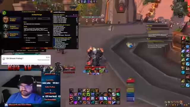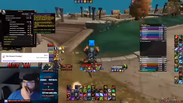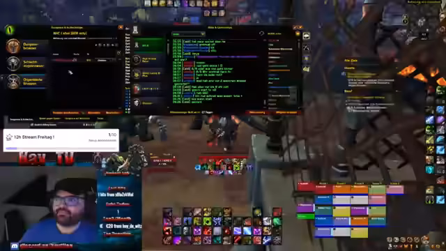 05:18:14Ein Event bei Metashi wird angekündigt, bei dem am Freitag ein 12-Stunden-Stream stattfinden soll, wenn 10 Subs erreicht werden. Der Streamer erklärt, dass er gerne Hardcore streamt und dies eine gute Gelegenheit darstellt. Auch werden die Vorbereitungen für den kommenden Dungeon-Run besprochen und die benötigten Rollen wie DDs und Unholy Decays gesucht.