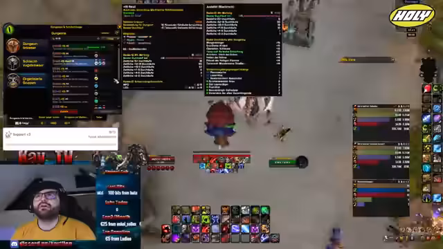 02:23:43Es wird ein Giveaway für ein 25 Euro Shop Mount veranstaltet, bei dem jeder durch Stream-Following und die Nutzung von !angeln teilnehmen kann. Zusätzlich wird ein NRC Community Raid um 18 Uhr angekündigt. Es wird betont, dass jeder mitmachen kann und dass es sich lohnt, dabei zu sein. Es wird ein Aufruf gestartet, dass man beim Discord die Weekly Kisten posten soll, damit alle sehen, was drin ist. Es wird sich über die Faulheit des Priesters lustig gemacht, weil er noch kein Update gebracht hat. Es wird erklärt, dass die Trops noch aktiv sind, solange oben noch etwas steht, was man noch nicht gesammelt hat. Es wird darauf hingewiesen, dass Legion das beste WoW-Header in Alltime war und dass es sich wie durchgehender Geschlechtsverkehr angefühlt hat. Es wird sich darüber lustig gemacht, dass Ferrer einen ablehnt, obwohl man mehr Rio hat als er. Es wird gefragt, ob er Lack gesoffen hat. Es wird erklärt, dass es jetzt One Button-Funktion gibt, also da kann man noch normal zocken halt, ohne Problem.