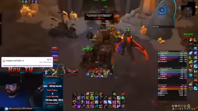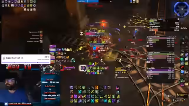00:52:14Kaytlien spielt einen 10er-Schlüssel im Dungeon Die Schlucht der Ahnen und erklärt seine Route anhand der besonderen Mob-Anordnung. Er beschreibt, wie er mit seinem BloodDK-Tank durch den Dungeon navigiert und wie er mit den Affixen umgeht. Er erwähnt auch, dass er für niedrigere Schlüssel weniger Pflege benötigt und häufiger spontan mit Zuschauern spielt.