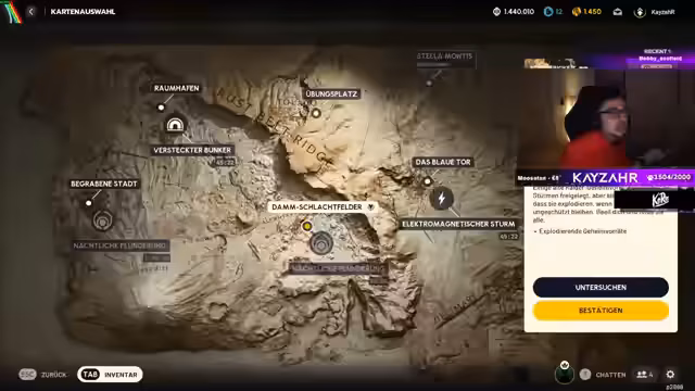 01:36:14Der Streamer konzentriert sich auf das Erfüllen von Quests, was sich als frustrierend erweist. Eine spezifische Suche nach einem „Bewohner“ in einem Turm gestaltet sich schwierig, da der Gegner nicht an seinem üblichen Spawn-Punkt auftaucht. Gleichzeitig wird der Bunker-Event als nicht aktiv dargestellt, da der Schlüsselgegner, die Königin, wegen eines Bugs nicht in die Rotation eingebunden ist. Der Streamer findet die aktuelle Spielsituation langweilig und sinnlos, da er die großen Herausforderungen nicht antreffen kann und stattdessen nur leichte Lootrunden absolviert.