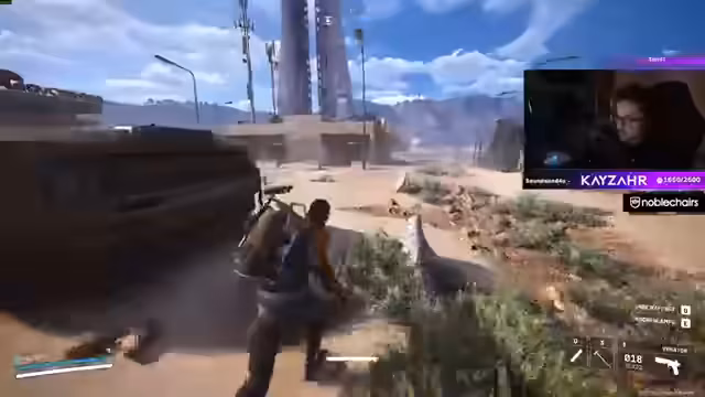 00:18:04Der Streamer ist nun in einer Runde, in der sich viele Spieler sammeln. Es kommt zu einem intensiven PvP-Geschehen, bei dem der Streamer und sein Team (Griff) gegen mehrere andere Spieler kämpfen. Sie schießen auf einen 'Rocketeer', eine besondere Gegnereinheit. Ein Spieler namens 'Splash' fungiert als Anführer. Nachdem sie die Rocketeer besiegt haben, treffen sie auf weitere Gegner und kämpfen sich zu einem Bunker-Event vor. Die Kommunikation auf Englisch gestaltet sich teilweise schwierig.