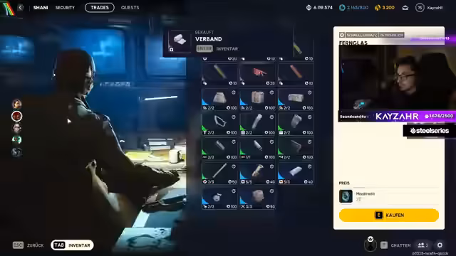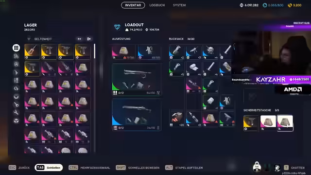 05:59:02Nach einem erfolgreichen Kampf wird der Frust über den Loot deutlich. Der Streamer bemerkt, dass ein Gegner die gesamte Map gelootet hat und er als Team viel Arbeit geleistet hat, während der Gegner alle wertvollen Beute wie Goob und Blueprints mitnimmt. Infolgedessen plant er, strategisch einige Gegenstände zu craften oder zu verkaufen, um Platz zu schaffen. Er führt auch eine kurze Inventar-Aufräumaktion durch, bei der er nutzlose Aufsätze wie den verlängerten Lauf auf einer Waffe verkauft.