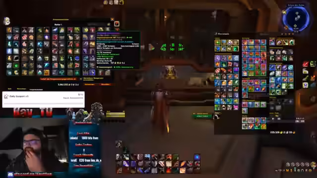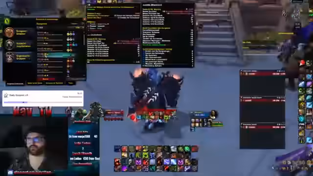 03:02:48Der Streamer wechselt den Fokus und startet das Spielen von World of Warcraft, um Dungeons zu finden. Er öffnet eine Dungeon-Warteschlange, wobei er darauf hinweist, dass die meisten seiner Follower zu diesem Zeitpunkt noch im Raid sind. Gleichzeitig wird ein Follower erwähnt, der seinen Job verloren hat, was zu Anteilnahme führt.