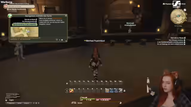02:55:06Der Streamer erwähnt seinen bevorstehenden Flug zum Final Fantasy Fan Fest in Anaheim und drückt seine Vorfreude aus. Er setzt das Gameplay fort und navigiert durch die Stadt Ulda. Er erklärt verschiedene Spielmechaniken wie die Steuerung mit Tastatur und Maus sowie das Crossplay-Feature auf verschiedenen Plattformen.