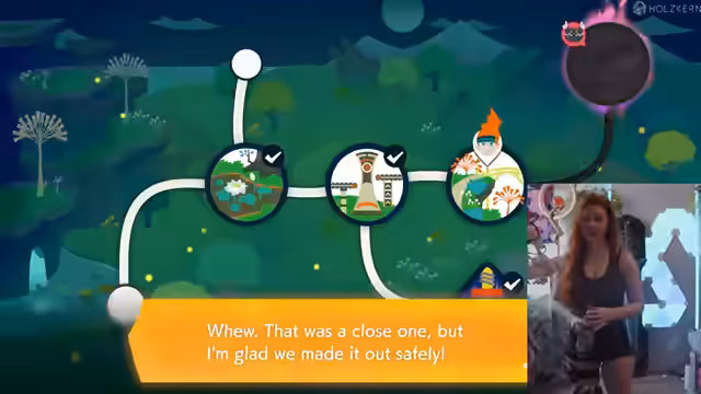 02:12:23Der Stream wechselt zu einer Gaming-Session des Spiels 'Ring Fit Adventure'. Die Streamerin kämpft sich durch verschiedene Level, beschreibt die Anstrengung ('Meine Beine brennen') und die darin enthaltenen Herausforderungen. Sie äußert ihre Frustration über die Schwierigkeiten, verliert 'Herzen' und trainiert motorisch anspruchsvolle Übungen, die sie nicht immer sofort meistert.