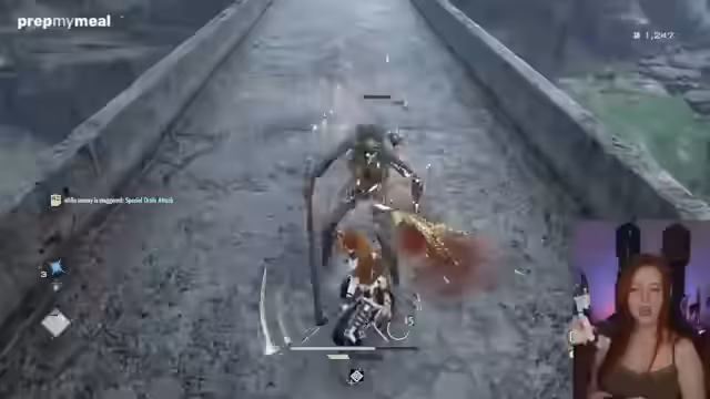 03:11:10Die Streamerin konzentriert sich intensiv auf das Erlernen des Kampfsystems. Sie versucht herauszufinden, wie man erfolgreich parriert, was Angriffe abblockt (Guarding mit L1) und wie man spezielle Angriffe (Special-Attacks) mit dem Charger-Arm ausführt. Sie beschwert sich über Schwierigkeiten bei der Einschätzung von Distanzen und dem Timing von Angriffen. Parallel dazu wird das umfangreiche Charakter-Customizing hervorgehoben, das es ermöglicht, das Aussehen, auch die Größe, detailliert anzupassen. Die Erkundung der Spielwelt, eines großen Hauses und der umliegenden Ruinen, wird als manchmal verwirschend beschrieben, da sie sich oft verläuft.