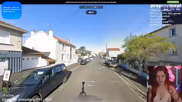 08:59:42Die Streamerin diskutiert ausführlich über ihre Pizza-Bestellung, entscheidet sich für Stuffed Crust und Mehlspeisen mit Käse. Während sie auf ihre Pizza wartet, spielt sie Geogaster, ein Ratespiel, bei dem es darum geht, Orte anhand von Bildern zu erraten. Sie befindet sich in einer Lobby und erklärt, dass sie mit anderen Spielern in einem 2-vs-2-Format antreten, wobei sie sich nicht direkt absprechen dürfen, da alle in separaten Kanälen sind.
