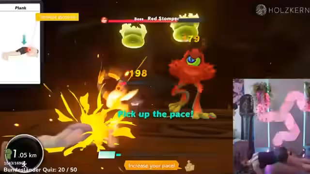 02:17:38Ein Kampf in einer Arena eskaliert, als der Streamer feststellt, dass der Gegner extrem viel Leben hat und seine Angriffe wenig Schaden anrichten. Die Nutzung von Smoothies ist strategisch, aber eine versehentliche Verschwendung führt zu Frustration. Die Angriffe wie Plank und Beinpresse erweisen sich als unzureichend, was den Kampf fast unmachtig erscheinen lässt.