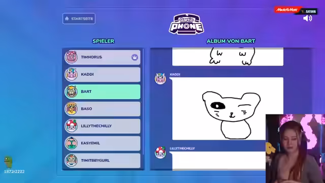 02:10:32Der Stream wechselt zum interaktiven Spiel Gartic Phone, bei dem Teilnehmer zeichnen und beschreiben, was sie sehen. Es werden verschiedene Runden gespielt, bei denen kreative und humorvolle Ergebnisse entstehen. Der Streamer moderiert das Spiel, gibt Tipps und reagiert auf die oft skurrilen Darstellungen. Die Dynamik zwischen den Spielern und den publikumsinternen Kommentaren sorgt für eine unterhaltsame Atmosphäre und fördert die Gemeinschaft im Chat.