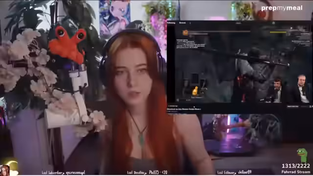 04:58:08Während des Streams reagiert der Streamer auf Clips und Kommentare aus dem Chat. Ein Clip zeigt, wie ihr Avatar in den Mund eines anderen Charakters gezwängt wird, was sie als unangenehm und nicht nach ihrem Geschmack empfindet. Um auf die Stimmung aufzuheitern, inszeniert sie einen Prank: Sie präsentiert ein Tattoo am Handgelenk, das sich später als selbstgemachte Folie herausstellt, was im Chat für Aufsehen und Lachen sorgt.