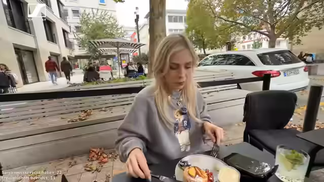 01:47:58Während sie auf einen Tisch warten, äußert die Streamerin ihre Angst vor Wespen, obwohl es in dem Café offensichtlich keine gibt. Die Situation ist entspannt, Kim hingegen ist neugierig und weniger besorgt. Die beiden planen, draußen zu sitzen, wenn ein Tisch frei wird, und warten geduldig, ohne sich von der Situation unter Druck setzen zu lassen.