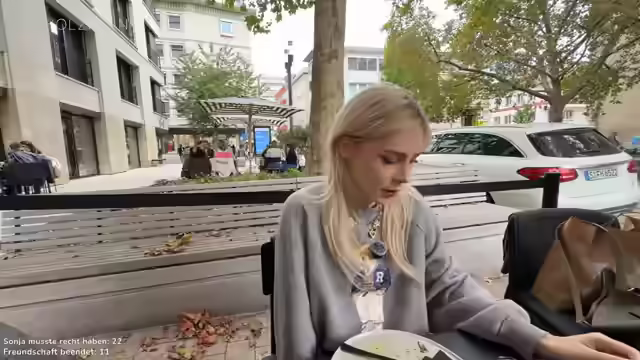 01:38:40Es wird beschlossen, ein Café zu besuchen, das etwas weiter entfernt liegt, aber zuerst muss das Auto geholt werden. Es gibt Schwierigkeiten beim Verlassen des Parkhauses, da dieses als voll angezeigt wird, obwohl noch freie Parkplätze vorhanden sind. Es wird spekuliert, ob dies an der mangelnden Parkfähigkeit mancher Autofahrer liegt. Schließlich wird das Café "Fritz" gefunden und ein Platz im Freien ergattert, wobei die Freude über den Viererplatz groß ist, da so das Handy gut positioniert werden kann. Es wird kurz über Wespen gesprochen und die Hoffnung geäußert, dass diese nicht stören werden.